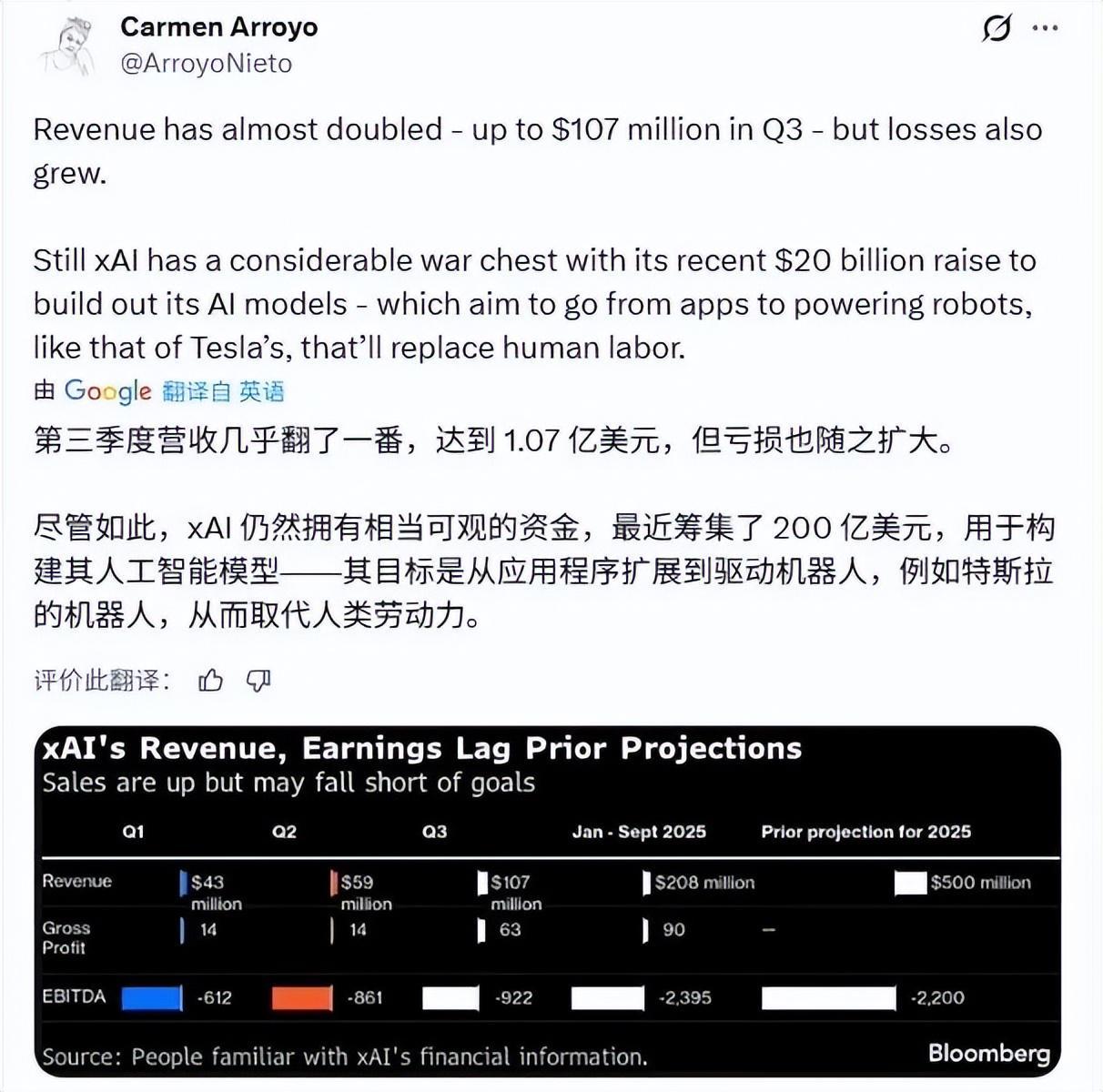 更何况,这家独角兽企业在2025年前三个季度都是亏损的,这次1400亿元的融资“豪赌”,估值翻了倍,马斯克能造“下一个OpenAI”吗?