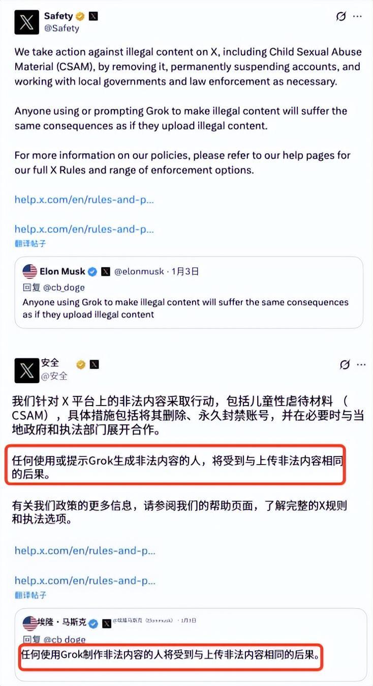 其实各国对AI乱象的态度和处理都不尽相同,马斯克看似中立的态度,一边声称是系统bug,一边又不遵守道德底线,这已经是在法律边缘行走,这种“裸奔式”的狂欢,只会等来更严苛的监管审判。
